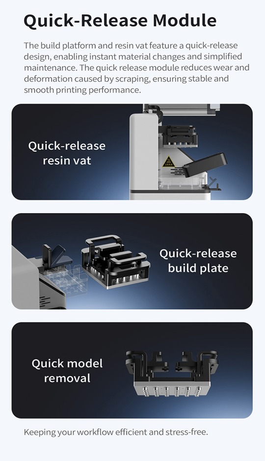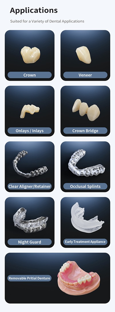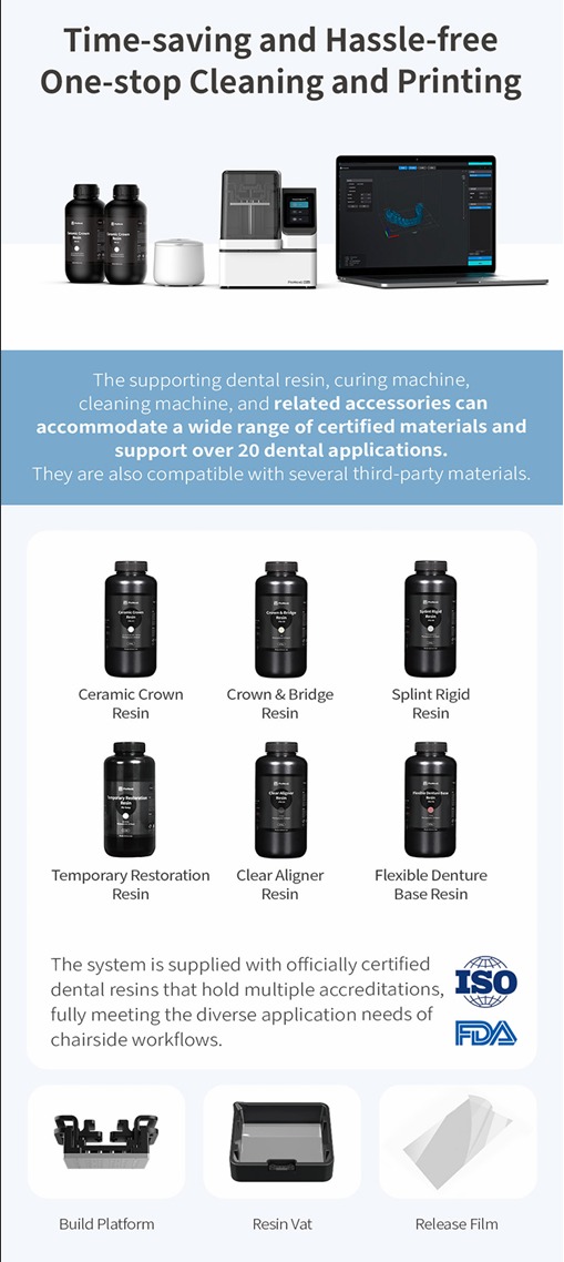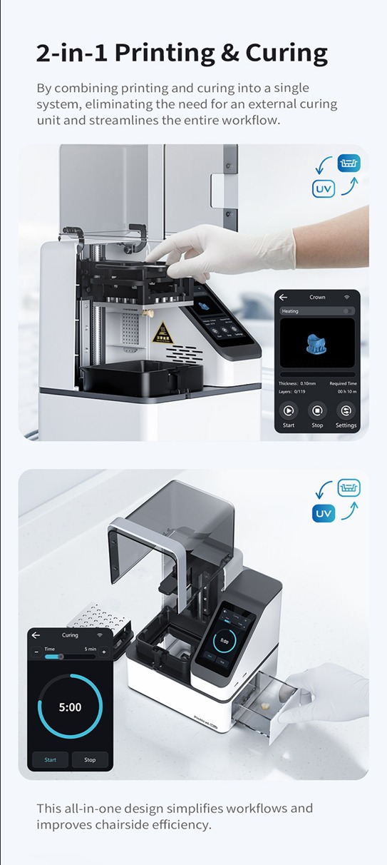 Datorită designului compact (comparabil cu jumătate de foaie A4) și tehnologiei LCD 9K de înaltă rezoluție, imprimanta oferă precizie ridicată, viteză mare de printare și rezultate constante pentru o gamă largă de aplicații dentare, inclusiv lucrări chairside.
